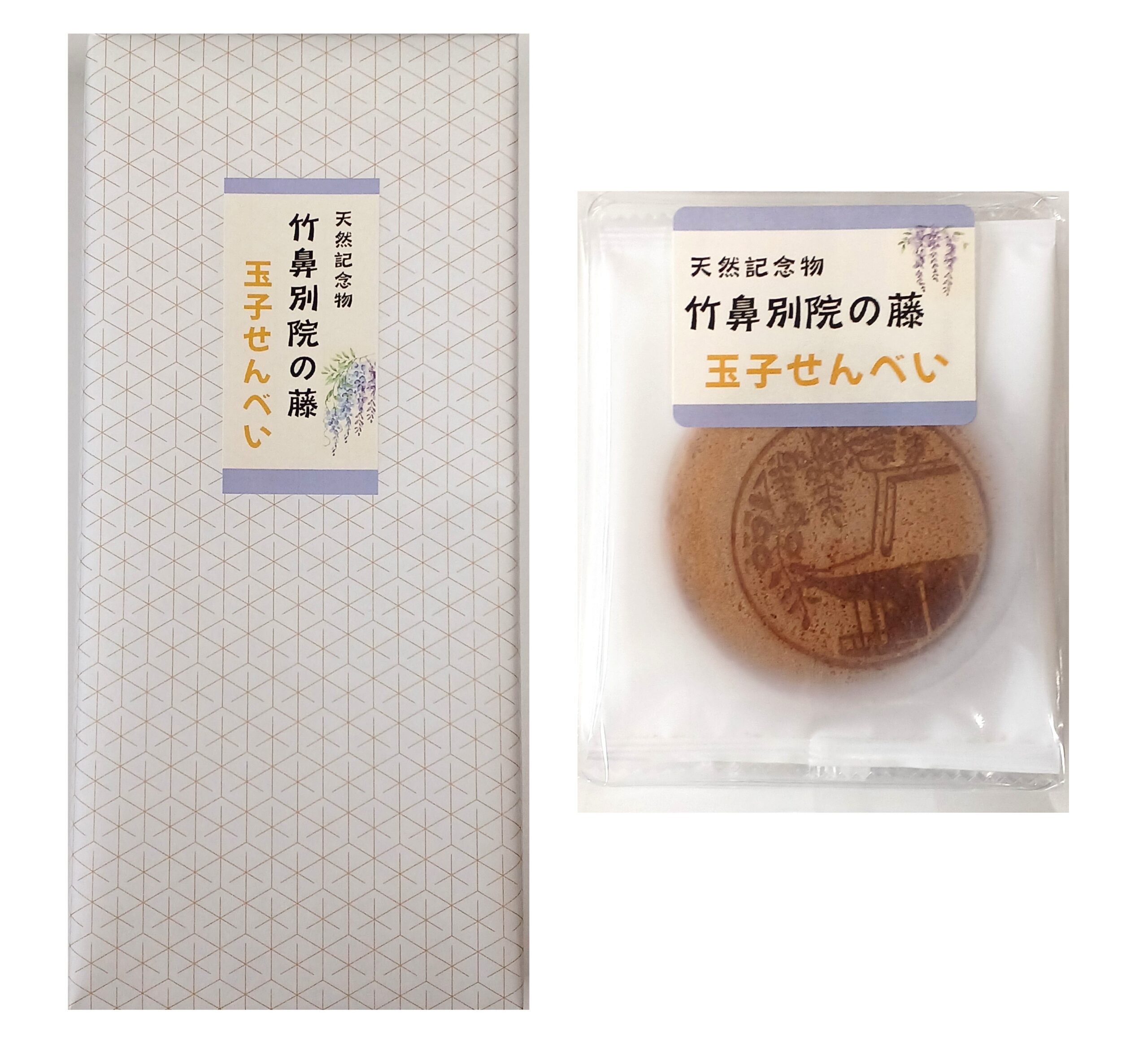 人気の期間限定商品「藤せんべい」から昨年リニューアルされた、「竹鼻別院の藤」の焼印が入った素朴で優しい味わいの玉子せんべいです。
