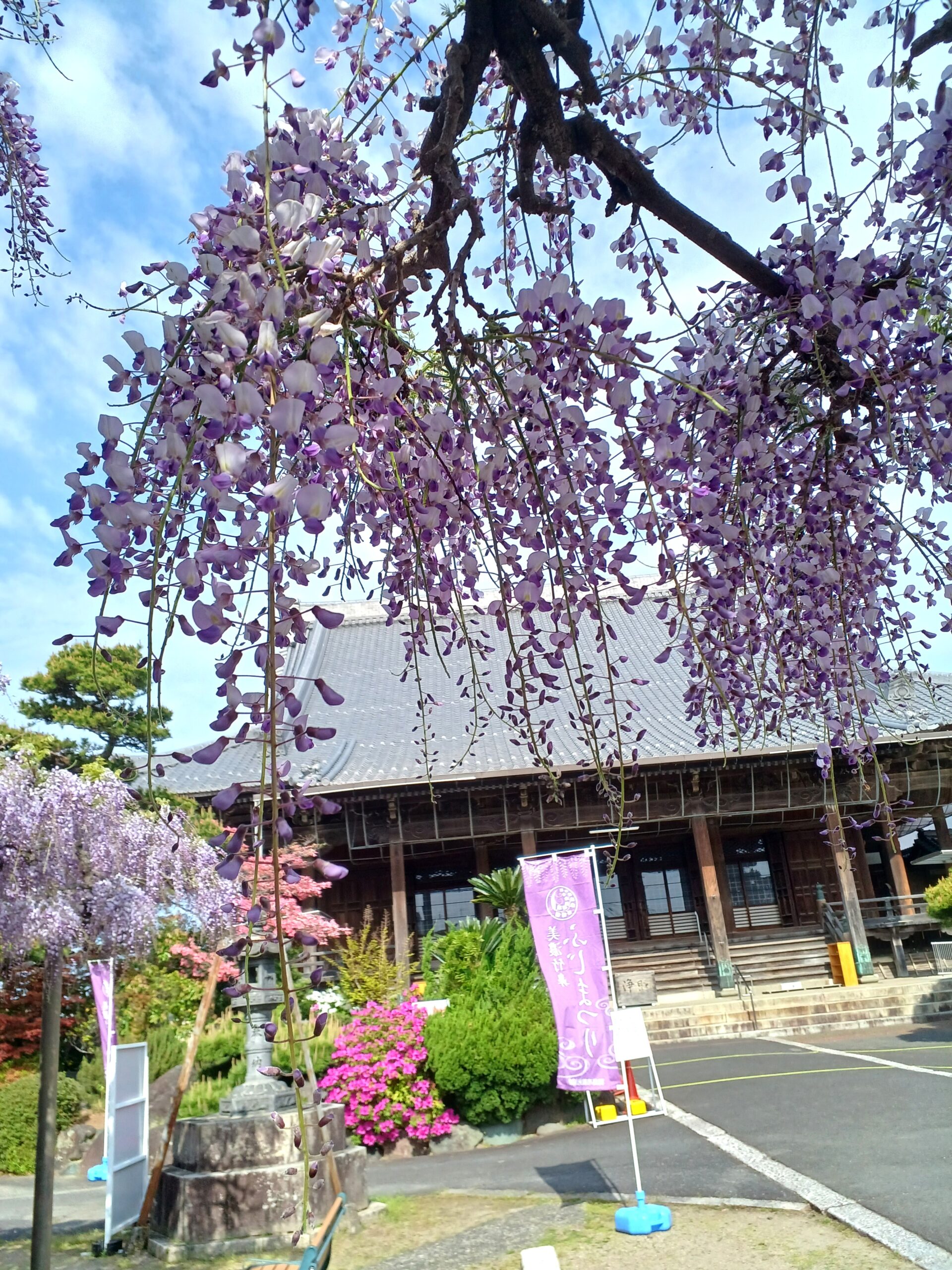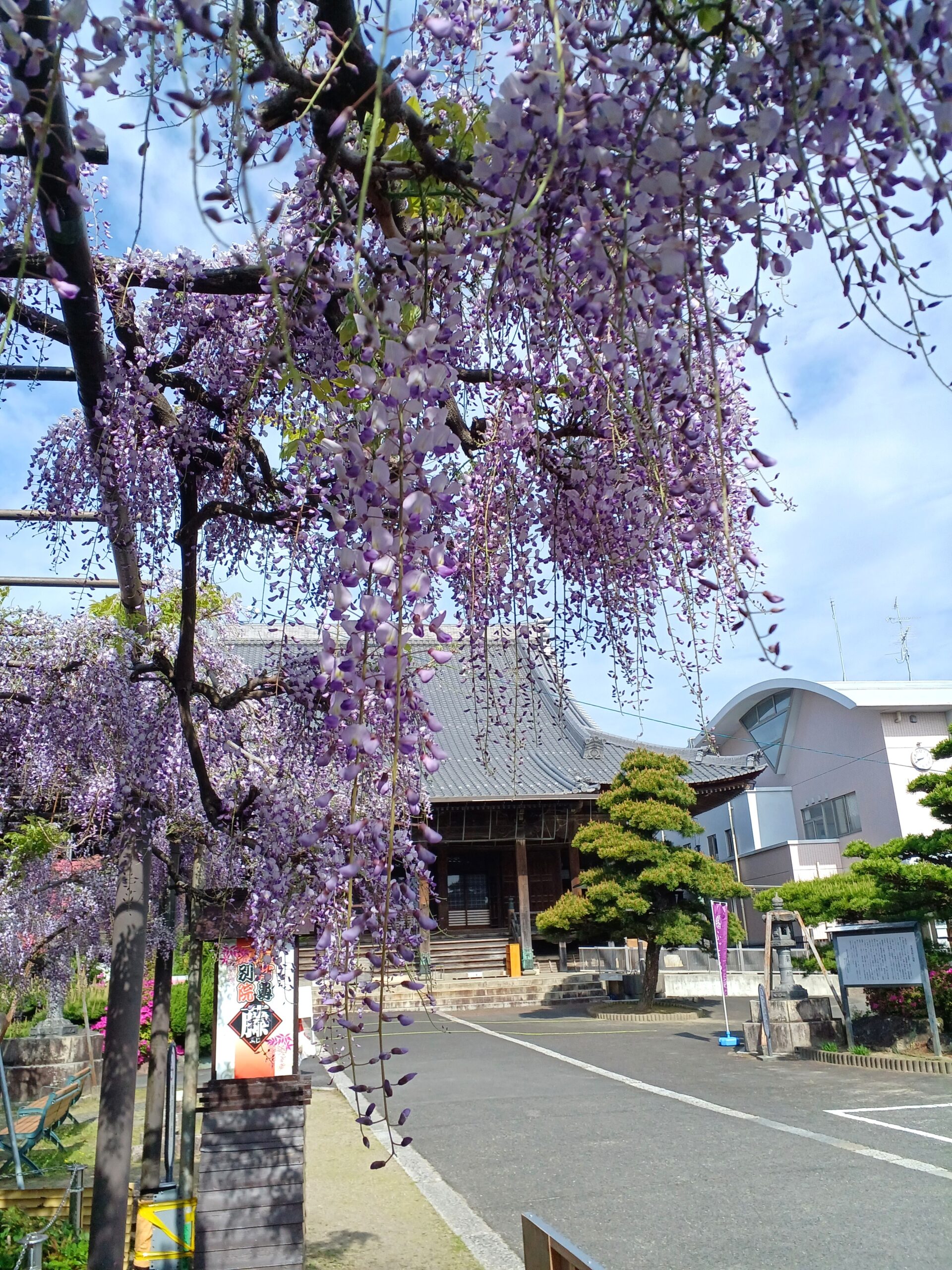 ここでは、竹鼻別院のフジの開花状況をお知らせいたします。