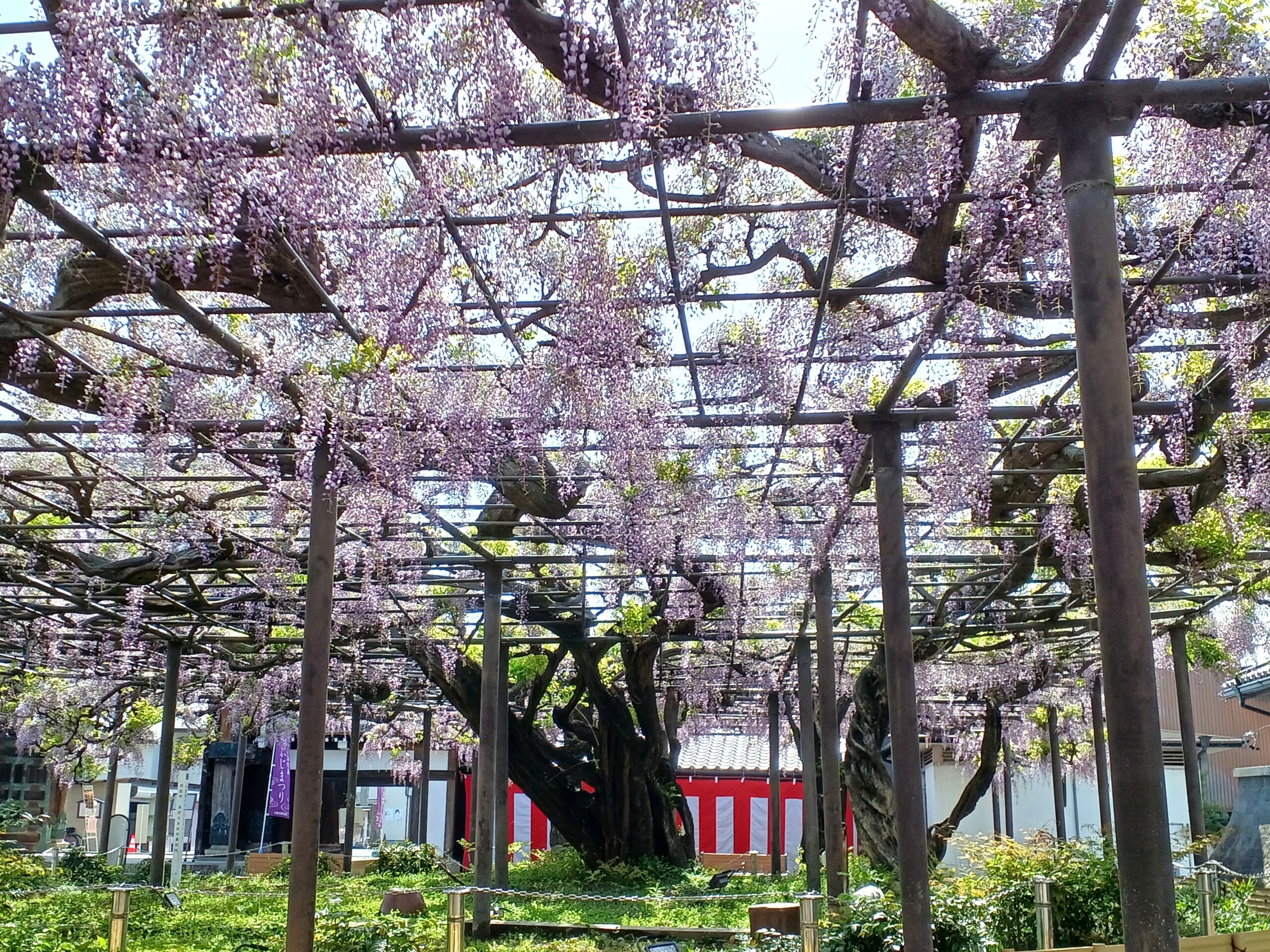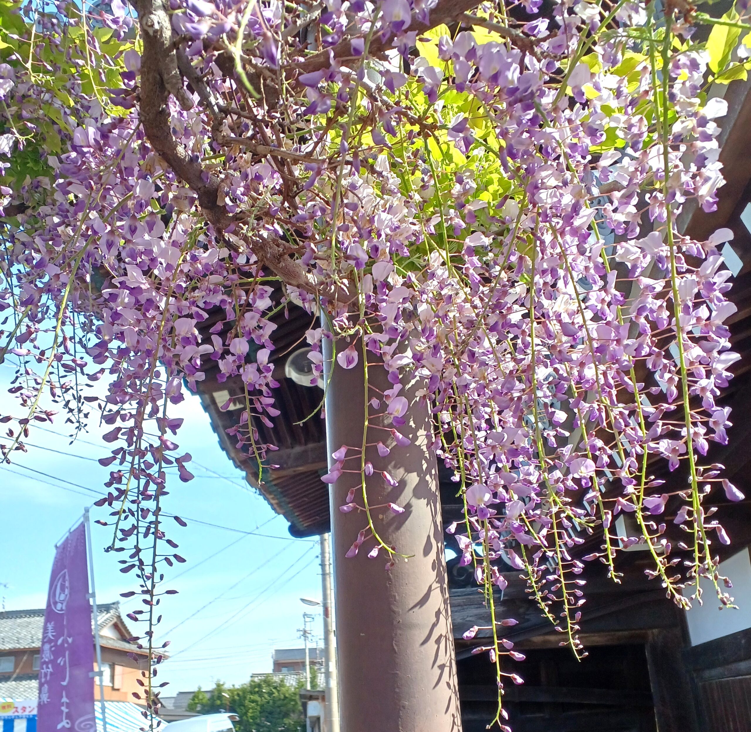 ここでは、竹鼻別院のフジの開花状況をお知らせいたします。