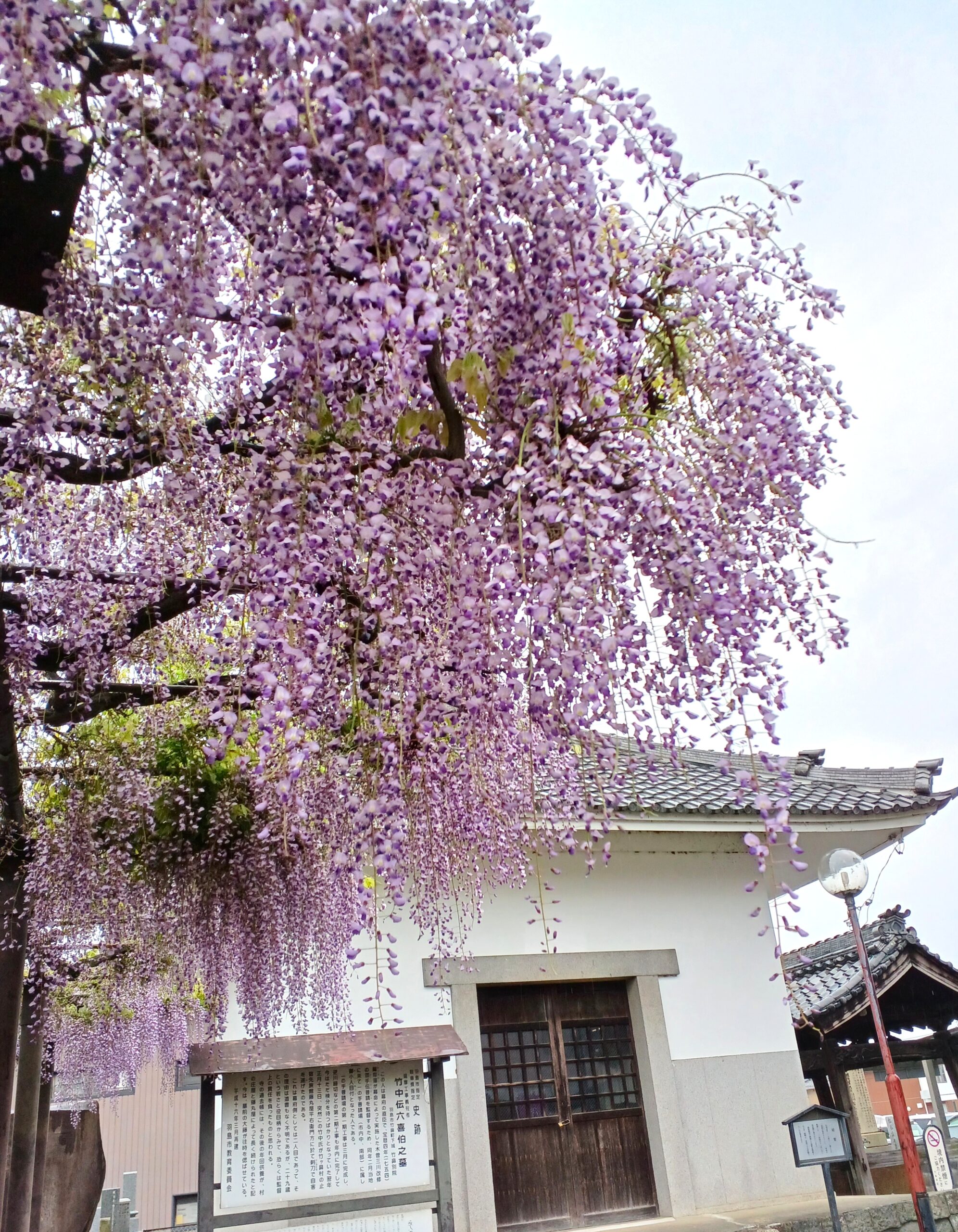 ここでは、竹鼻別院のフジの開花状況をお知らせいたします。