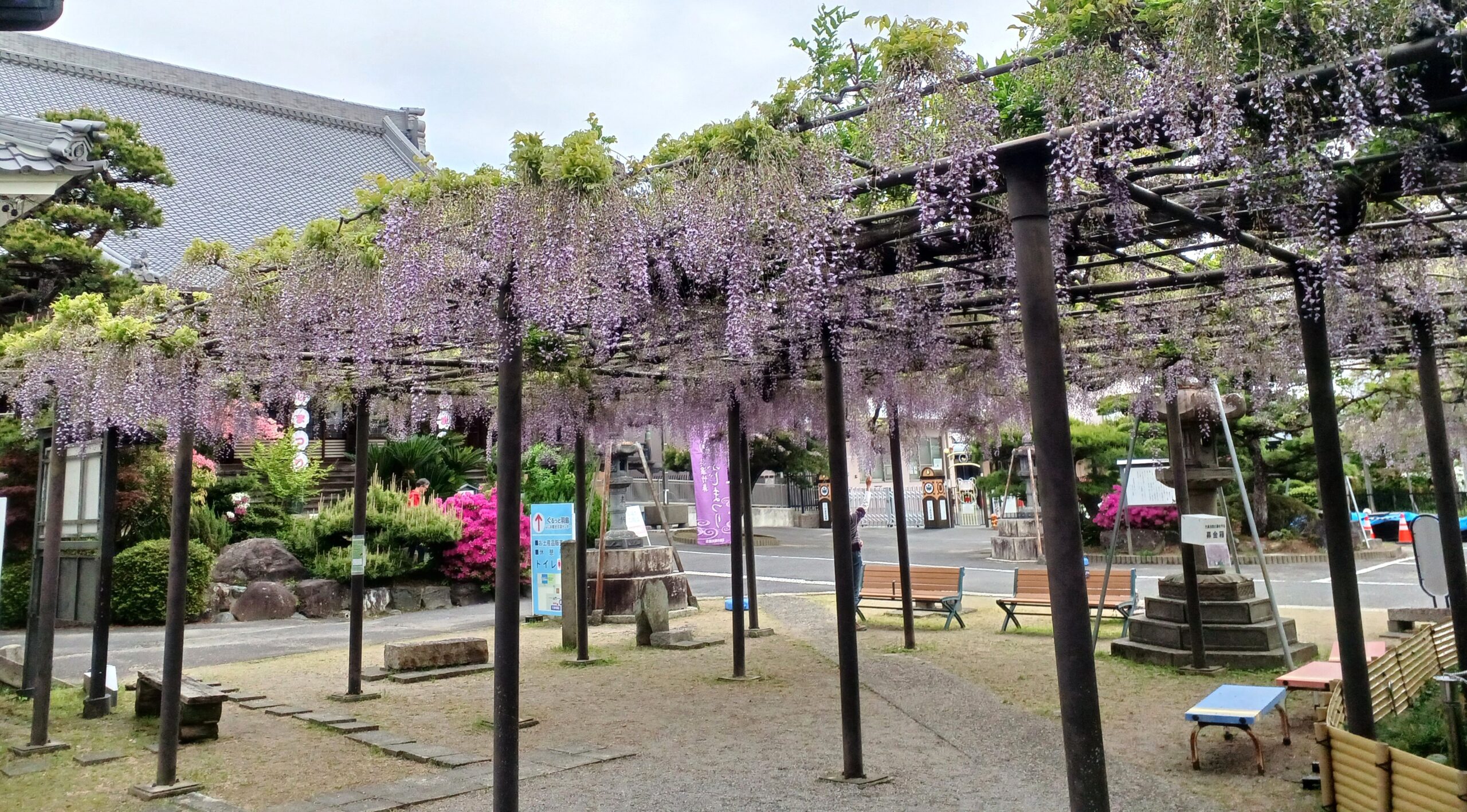 ここでは、竹鼻別院のフジの開花状況をお知らせいたします。
