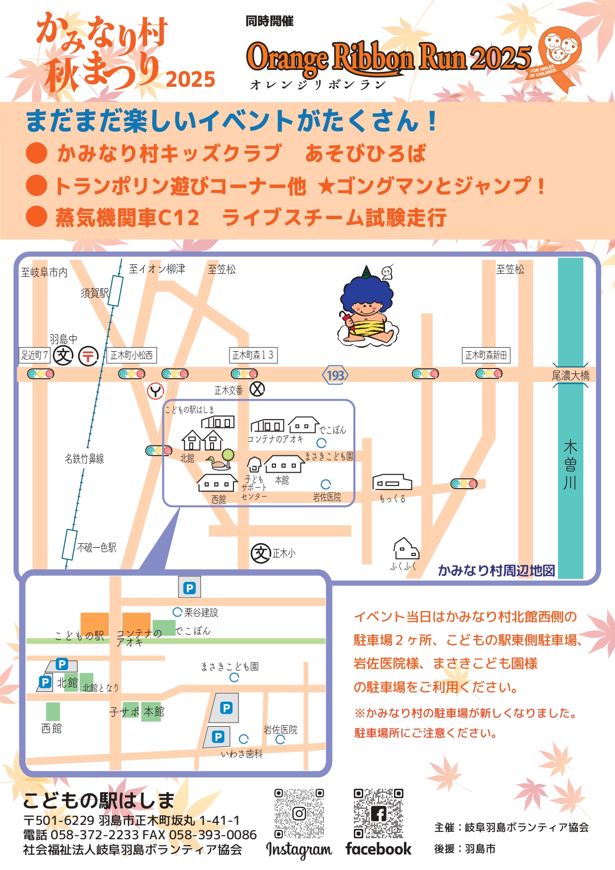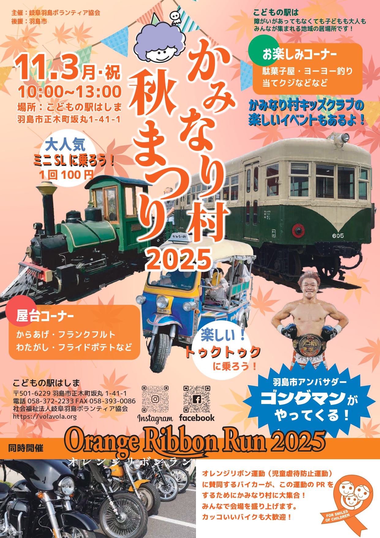 こどもの駅では、お馴染みのミニSL&トゥクトゥク乗車コーナーをはじめ、屋台やキッチンカーが並ぶグルメコーナー、ヨーヨー釣り、くじ引き、トランポリンなどの遊びコーナーの他、羽島市アンバサダーのゴングマンも登場し、一緒にイベントを盛り上げます。