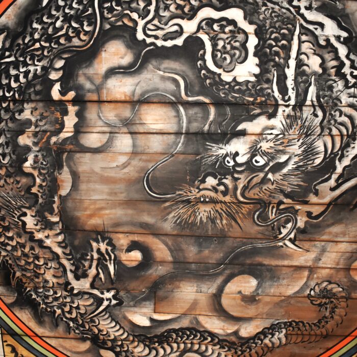 竹ヶ鼻城主歴代の菩提寺。本堂に描かれている丹精の美を極めた絵天井「雲龍」は幕末の大和絵師浮田一蕙斉の作であり、県の重要有形文化財に指定されています。